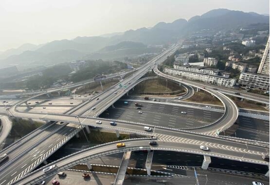 成渝高速中梁山隧道擴容改造工程三標段(西環立交及東接線工程)道路全長9.369公里,包括成渝主線拓寬改造段K6+650~K7+040 (城市快速路,標準路幅寬度35.5米),內環主線拓寬改造段K1+850~K3+480 (城市快速路,標準路幅寬度41.5米)及立交匝道A、B、C、D、E、F、G、H、I、J、K、L共12條,匝道總長4800. 431米。西環立交設計范圍內拆除12座橋梁,新建13座橋梁,接長既有涵洞3座;清水溪泄水新通道總長度636.2米,涉及改移自然河道276米,改造現有涵洞367米。本項目是重慶西站重要配套市政交通樞紐,對完善主城骨架道路系統有著極為重要的意義,項目通車后極大地緩解了交通擁堵,解決了中梁山隧道的瓶頸問題和內環交通的快速疏散問題。