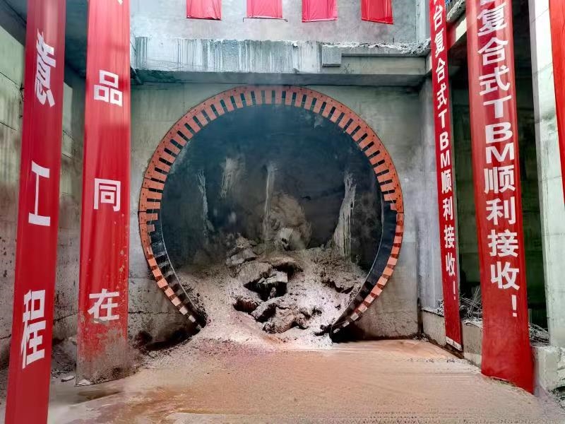 瓦茶區(qū)間為單洞雙線隧道,左線長約1.7km,最大坡度36‰,隧道頂部最大埋深約32m,系該工程首條長距離、大坡度盾構(gòu)隧道。掘進路線主要穿越回填土區(qū),隧道上方范圍內(nèi)有多個U型回填土層集水凹槽,地下水豐富,水壓較高,地質(zhì)條件復(fù)雜,掘進過程中易造成管片上浮、錯臺、滲漏水、掘進效率低等問題。盾構(gòu)施工過程采用了特殊調(diào)配添加劑的預(yù)拌砂漿、在富水區(qū)開孔泄水時采用雙液漿封水環(huán)和二次補注漿等技術(shù)措施,確保了施工質(zhì)量,實現(xiàn)了TBM勻速穩(wěn)步掘進。同時借助先進的電子監(jiān)測設(shè)備和智慧工地管理系統(tǒng),實現(xiàn)全施工過程信息化監(jiān)測,切實保障施工過程安全。市建科院檢測中心作為該工程的第三方檢測方,在盾構(gòu)施工過程中,積極組織人員,全力配合項目進度,及時開展相關(guān)料原材料等檢測工作,及時出具檢測報告,確保各項檢測參數(shù)滿足設(shè)計及規(guī)范要求。