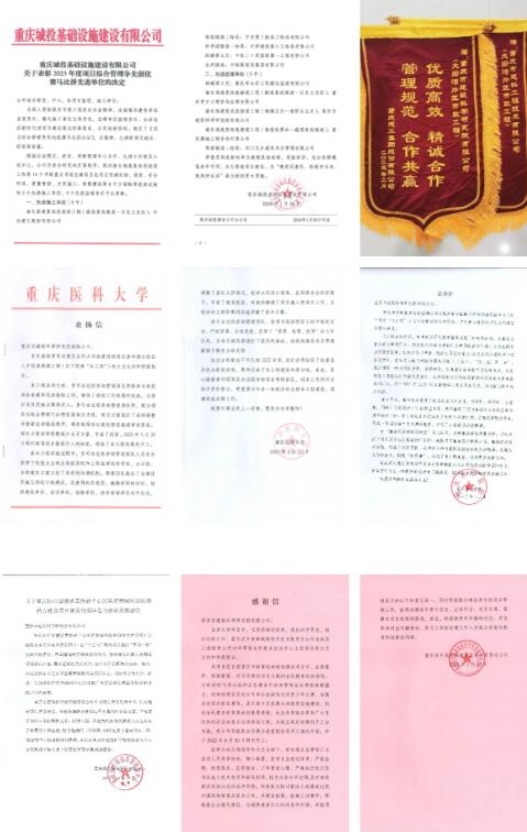 今年以來(lái),公司聚焦公共設(shè)施完善和區(qū)域互聯(lián)互通水平提升,助力人居環(huán)境改善和生產(chǎn)生活品質(zhì)提升,承擔(dān)的渝長(zhǎng)高速?gòu)?fù)線連接道工程(海騰立交-南橋頭立交)、大田灣片區(qū)市政工程、重慶醫(yī)科大學(xué)政策性租賃住房和縉云校區(qū)人才住房新建工程、重慶市中醫(yī)院中醫(yī)藥傳承創(chuàng)新中心、重慶醫(yī)療器械質(zhì)量檢驗(yàn)中心醫(yī)療器械檢驗(yàn)檢測(cè)能力建設(shè)項(xiàng)目、李雪芮全民健身運(yùn)動(dòng)中心工程等多個(gè)項(xiàng)目相繼獲業(yè)主方感謝信。