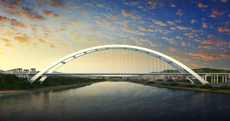 瀘州市藍田過江通道(藍田長江五橋)及連接線工程是《瀘州市跨江通道專項規劃(2014-2030)》中規劃的新建8座跨江通道之一,項目包含跨江主橋、兩岸引橋、學院中路升級改造、未來大道延伸線工程等,總投資約35.74億元。其中,主橋凈跨徑為570m鋼箱拱橋、雙向六車道,總寬48.5m,總長度為612m,為目前在建世界最大跨徑中承式鋼箱拱橋。