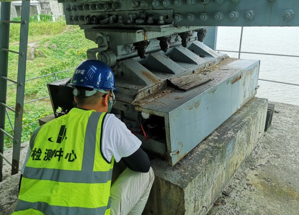 (檢測人員進(jìn)行橋梁支座位移檢測)